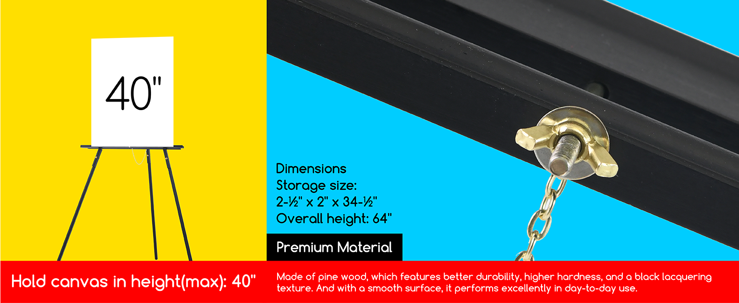 MEEDEN Beech Wood Display Wedding Easel Stand, Max Height 64'' Holds Up to 40"/11lb, Walnut Wooden A-Frame Tripod Studio Artist Floor Easel for Wedding Sign, Poster, Canvas, Show, Presenting