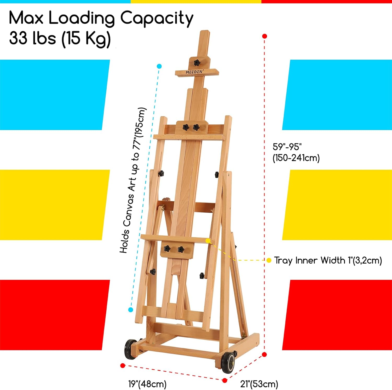 MEEDEN Extra Large Heavy-Duty H-Frame Studio Easel - Solid Beech Wooden Artist Professional Easel, Painting Art Easel Stand with 4 Premium Locking Silent Caster Wheels, Hold Max 82