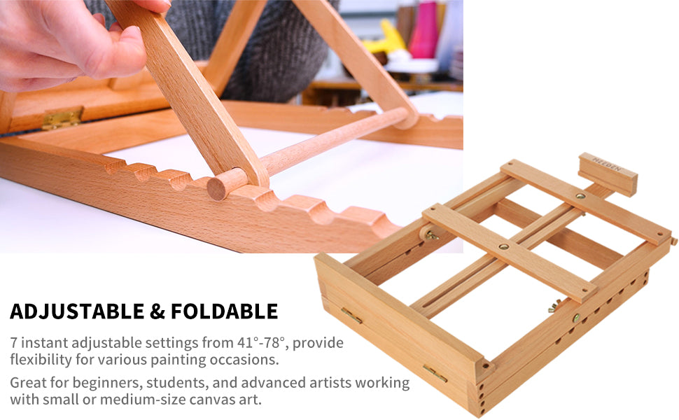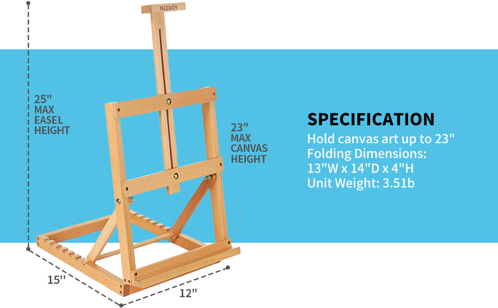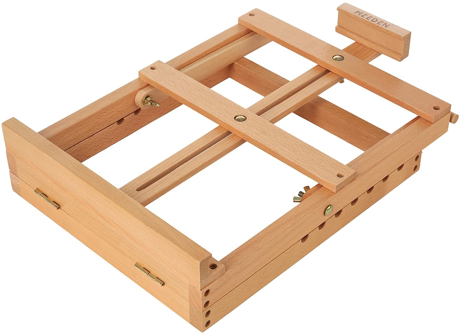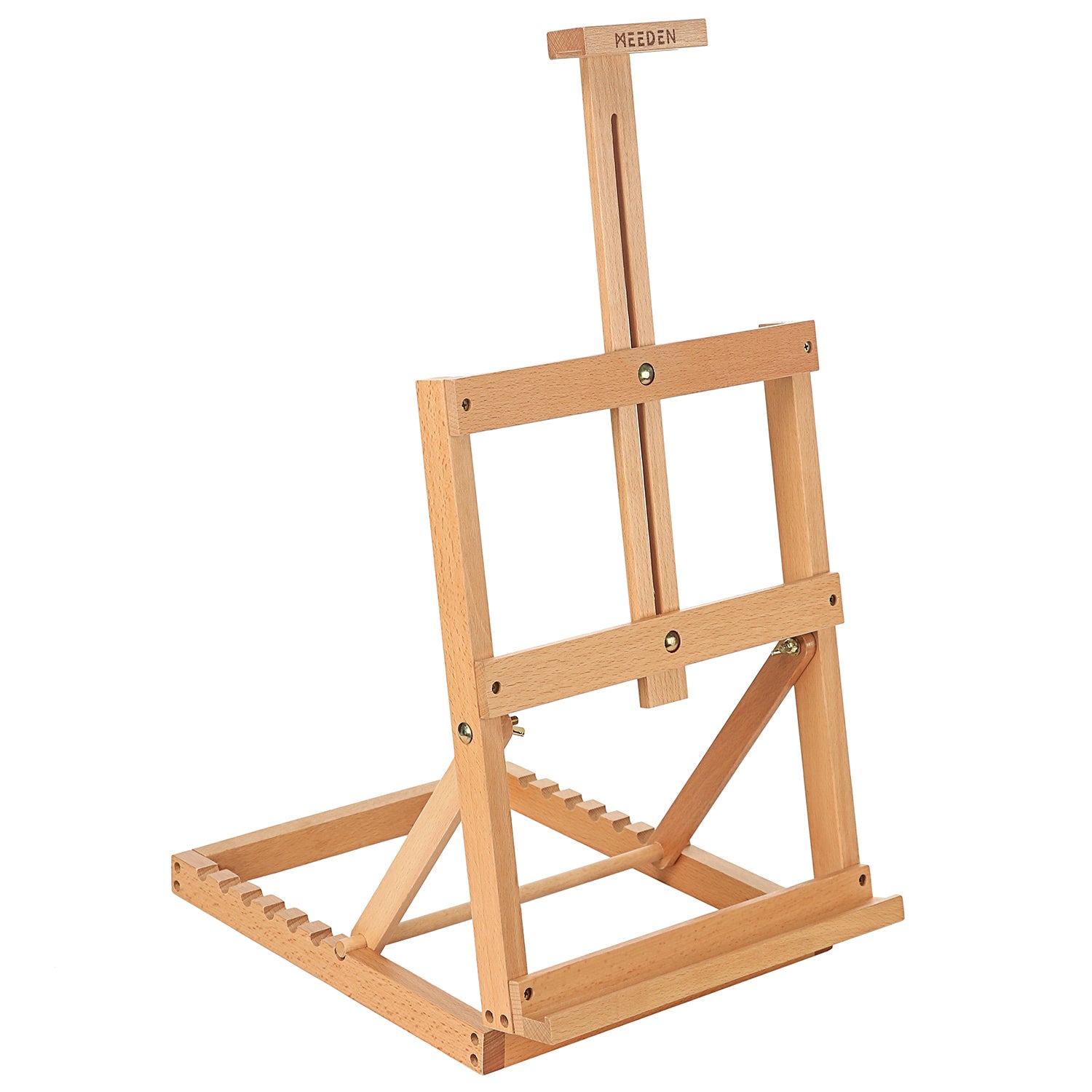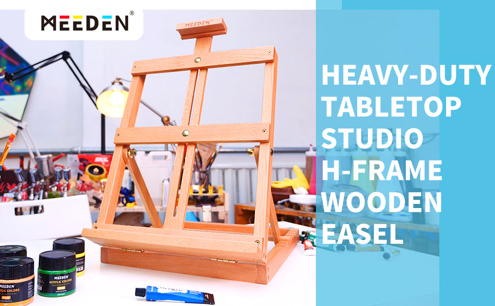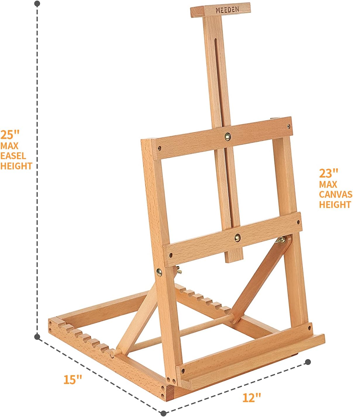 MEEDEN Heavy-Duty Tabletop Studio H-Frame Wooden Easel- Solid Beech Wood Adjustable Artists Desktop Wood Easel Table for Artist, Beginners & Teens- Holds Canvas Art up to 23" High