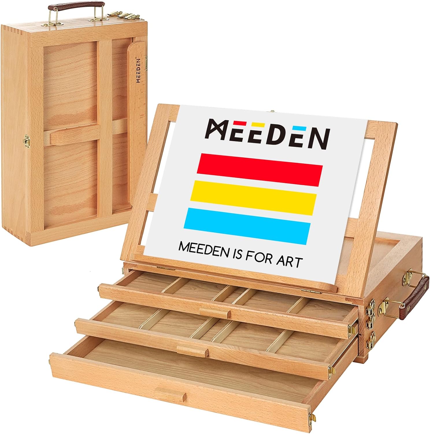 MEEDEN Large Adjustable Artist Tabletop Sketchbox Easel- Multi-Function Solid Beech Wood Storage Box Easel with 3-Drawer for Artist, Art Students & Beginners