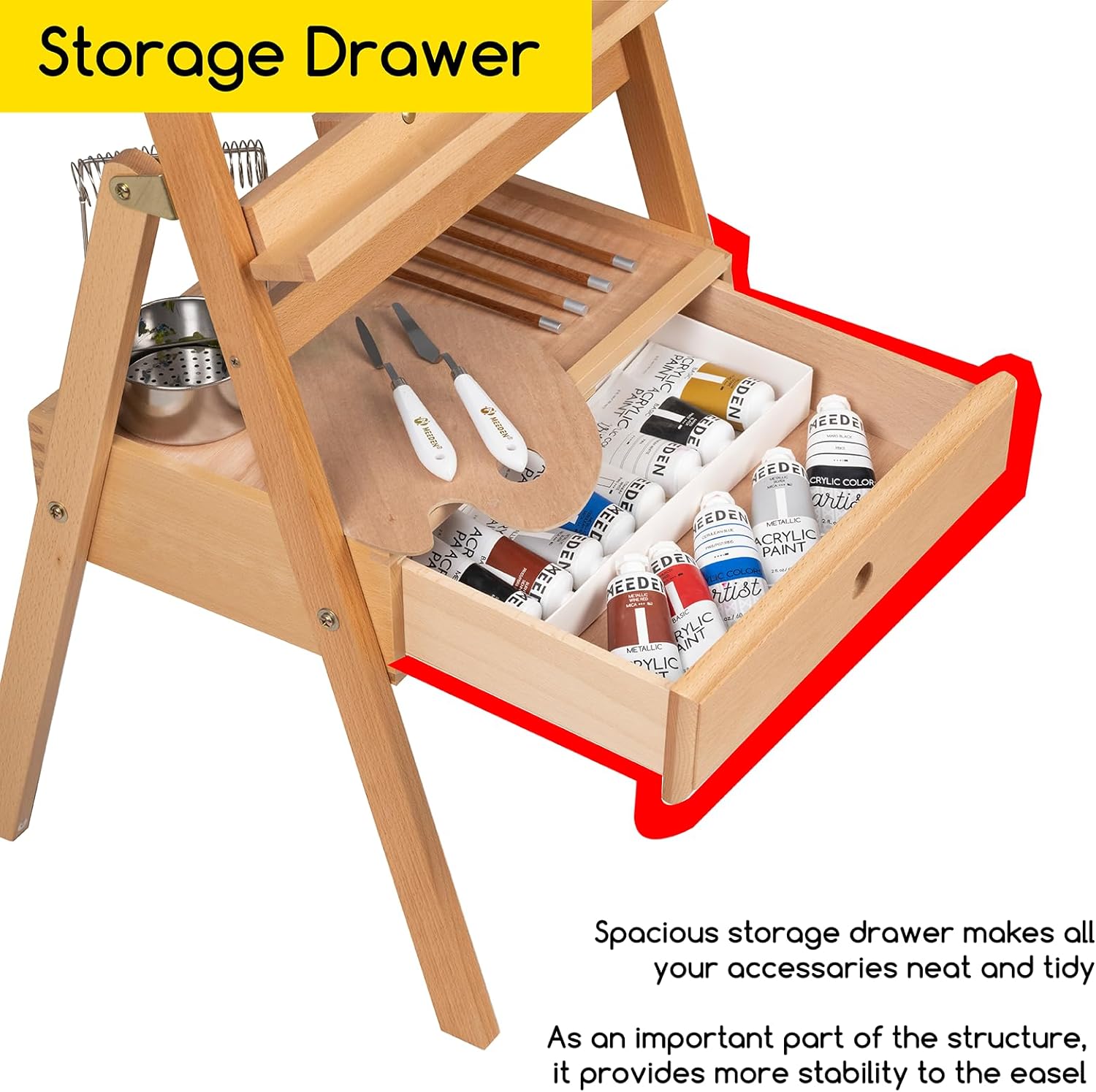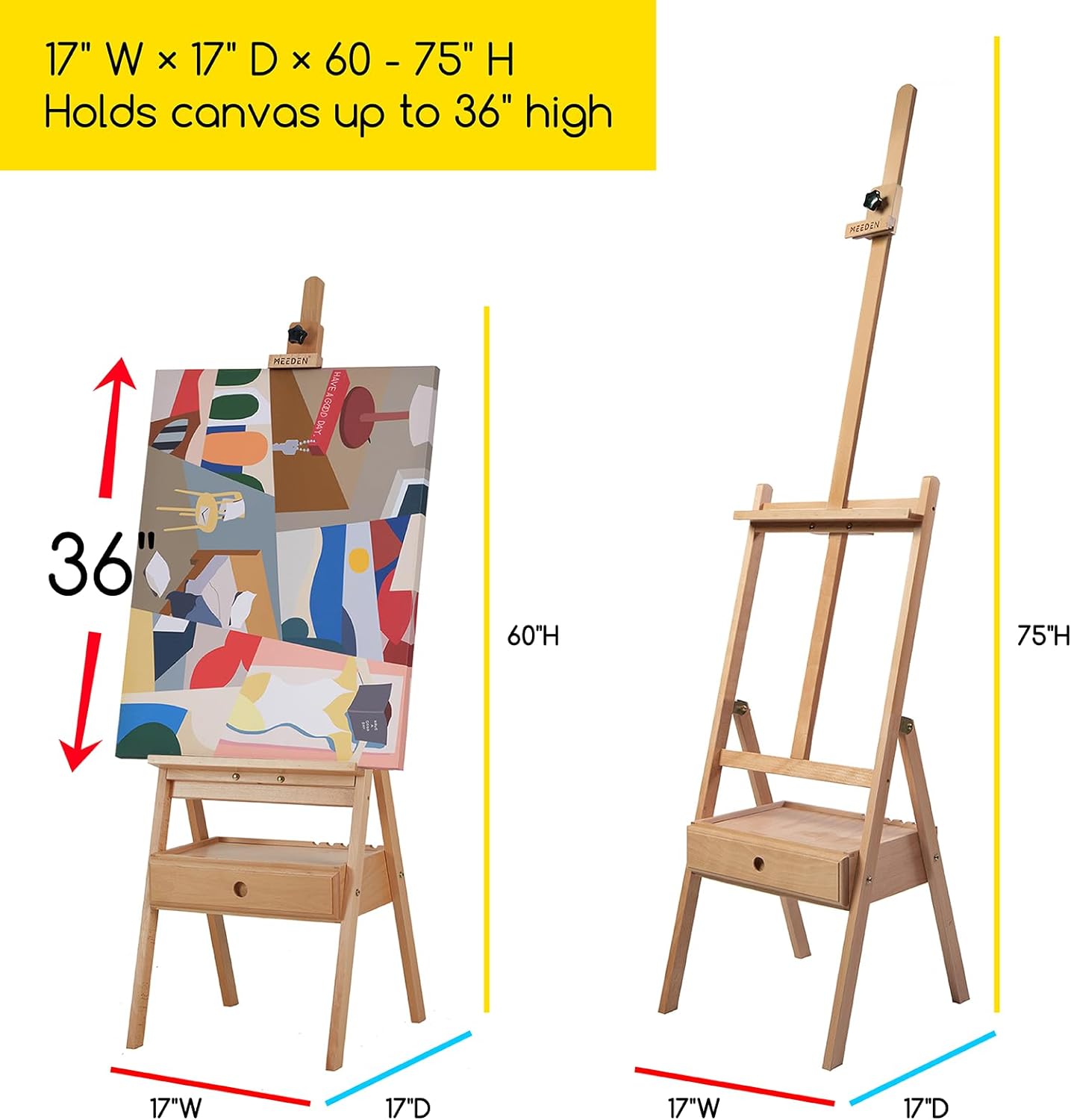 MEEDEN Painting Easel with Storage Drawer, Studio H-Frame Easel- Adjustable (60"~75") Solid Beech Wood Easel Stand for Painting for Adults, Holds Canvas Art up to 35",Natural