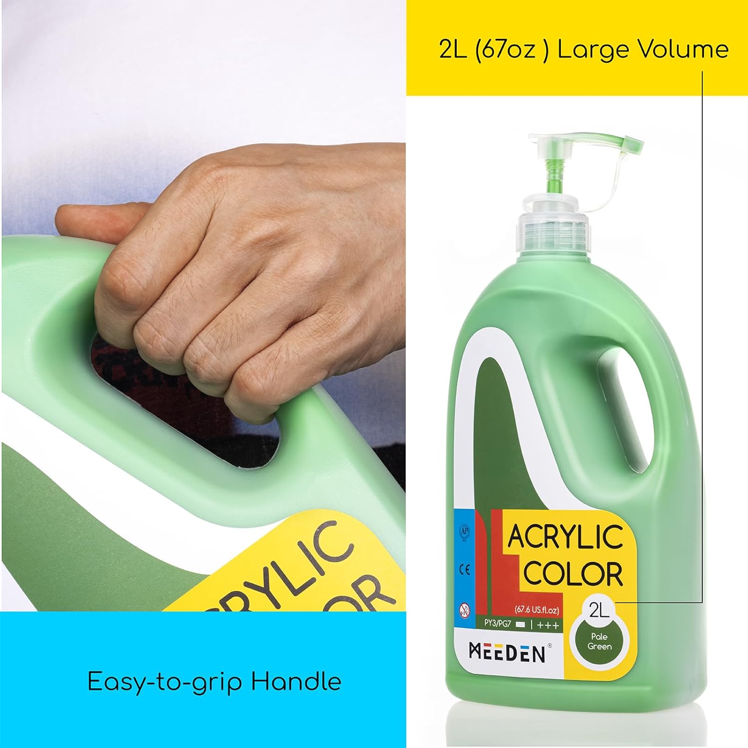 MEEDEN Green Acrylic Paint with Pump Lid, 1/2 Gallon (2L /67.6 oz.) Heavy-Body Non-Toxic Rich Pigment Color, Perfect for Art Class, Wall Painting, Painting Party & Creative DIY
